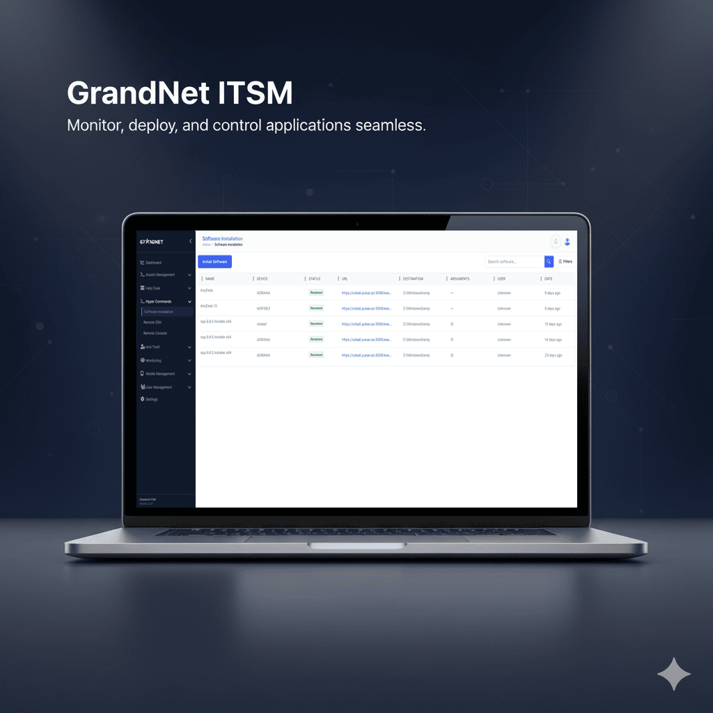 Request a demoGrandNet ITSM unifies assets, helpdesk, automation, and monitoring—so your team moves faster and safer.